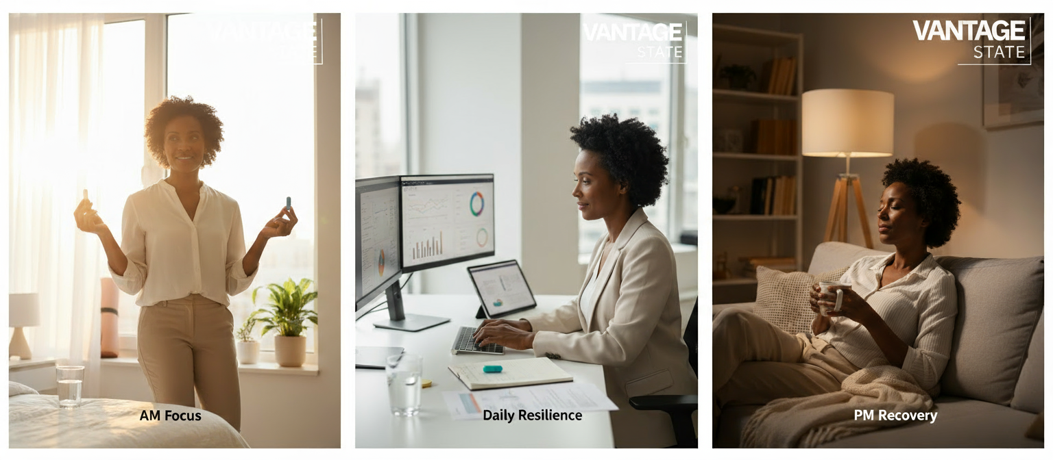 We created Vantage State because we lived it: the long hours, the constant travel, and the relentless client demands that force too many brilliant professionals to sacrifice their health for their careers. We saw a gap in the market for a brand that rejects the "hustle-at-all-costs" mentality. Our supplements are not designed to help you work harder; they are designed to help you perform smarter by operating in the right state—clear, calm, and recovered—when it matters most.